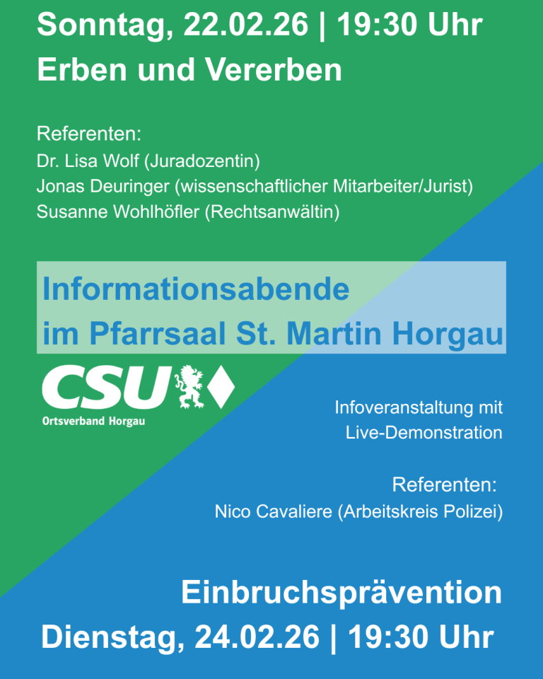 Mit den gut besuchten Veranstaltungen setzt die CSU Horgau ihre Informationsreihe erfolgreich fort und plant, auch künftig aktuelle und alltagsrelevante Themen aufzugreifen.